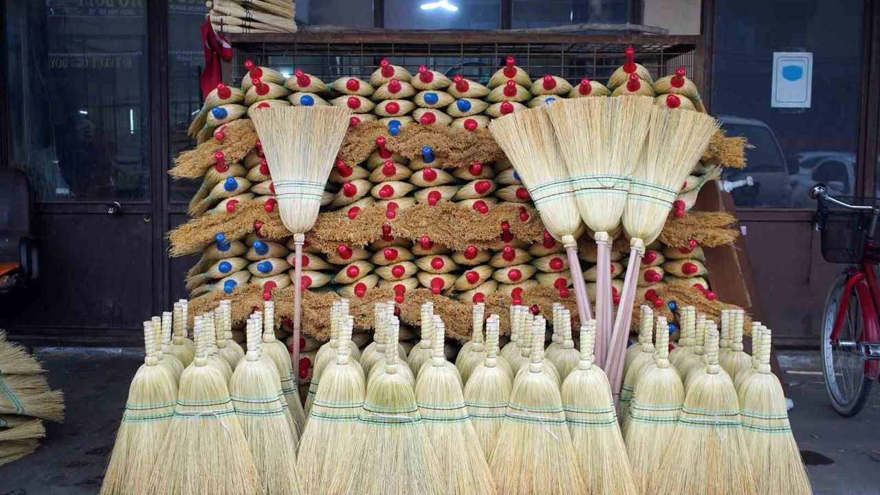 46 yıldır ustalık yaptığını belirten Selahattin Burucuoğlu, 'Bizim yaptığımız iş süpürgenin imalatı. Ot olarak geliyor, işlendikten sonra bizlere gelir. Dört aşamadan geçer ve süpürge haline gelir. Vatandaşlar bunu bahçesinde, balkonunu yıkarken kullanıyor. Eskiden alışık olan insanlar evinde bulunduruyor. Hanımlar, halıları dövüp arkasında bu süpürgelerle süpürürlerdi şimdi o durum kalmadı. Robotlar, elektrikli süpürgelerle süpürüyorlar, yıkama zamanı gelince de halı yıkamacılara veriyorlar' dedi.