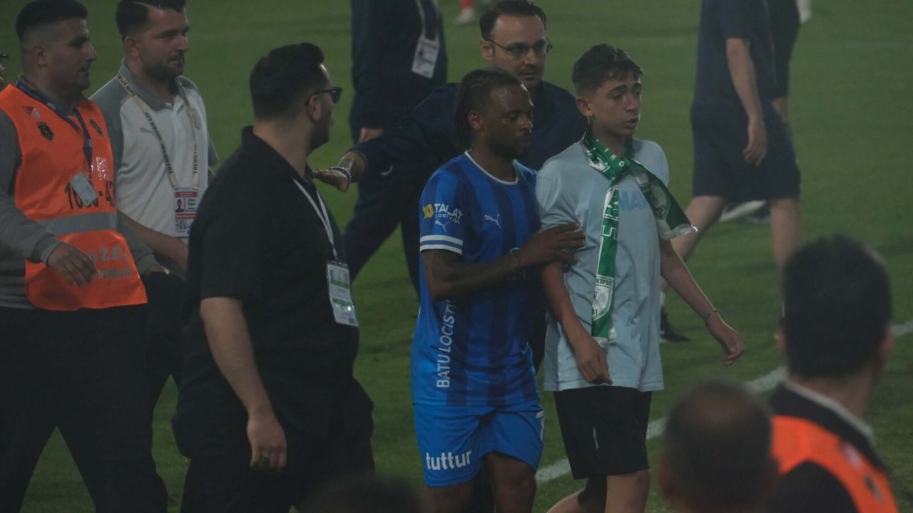 Fırat AKAY / BODRUM, (DHA)- SÜPER Lig 33’üncü hafta mücadelesinde Bodrum FK, sahasında konuk ettiği Samsunspor’a 2-1 mağlup oldu. Karşılaşmanın uzatma dakikalarında VAR kararına isyan eden Bodrum FK’lı yönetici Caner Tuna sahaya girerek hakeme itirazda bulunurken, Tuna polis ve güvenlik ekiplerinin kontrolüyle sahadan çıkarıldı. Maçın bitiş düdüğün çalmasıyla birlikte genç bir taraftar sahaya girdi, Fredy genç taraftarı sahadan çıkması için ikna ederek saha kenarına kadar eşlik etti.