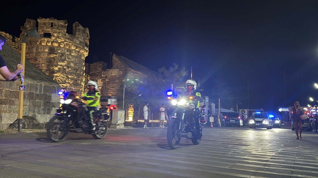 Öte yandan, Bodrum Kalesi önünde jandarma ekipleri motosiklet ve araçlarla geçiş yaptı. (DHA)
