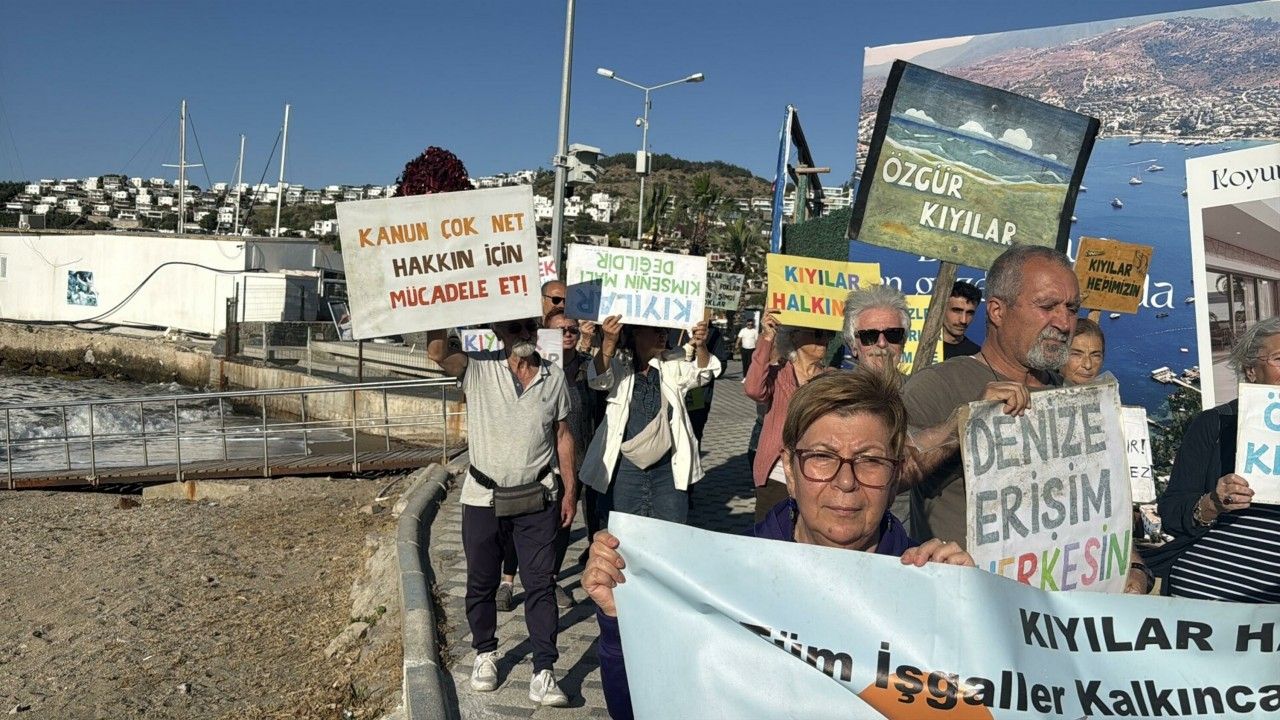Özgür Kıyılar Bodrum İnisiyatifi üyeleri, turizmin önemli merkezlerinden Bodrum’un Gündoğan Koyu'na inşa edilen kaçak iskele ve platformlara tepki göstermek için protesto gerçekleştirdi. ‘Kıyılar Halkındır, Tüm İşgaller Kalkıncaya Kadar Kıyılardayız', 'Denize Erişim Herkesin Hakkı’ yazılı pankart ve dövizler taşıyan eylemciler, sloganlarla Gündoğan sahilinde yürüdü. Yürüyüş sırasında eylemciler kaçak iskele ve eklentilerin yıkılmasını istedi. Basın açıklamasının ardından slogan atan eylemciler daha sonra dağıldı. (DHA)
