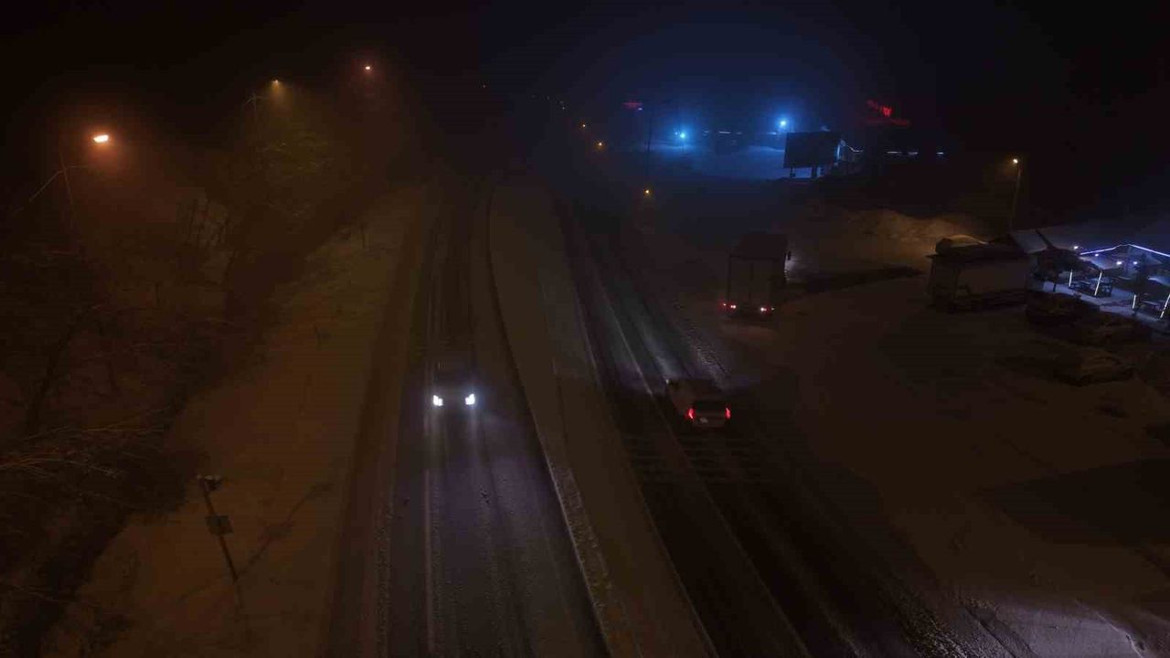 Bolu Dağı geçişinde beklenen kar yağışı etkisini göstermeye başladı. Görüntülenen bölgede karla mücadele çalışmaları aralıksız sürüyor.
