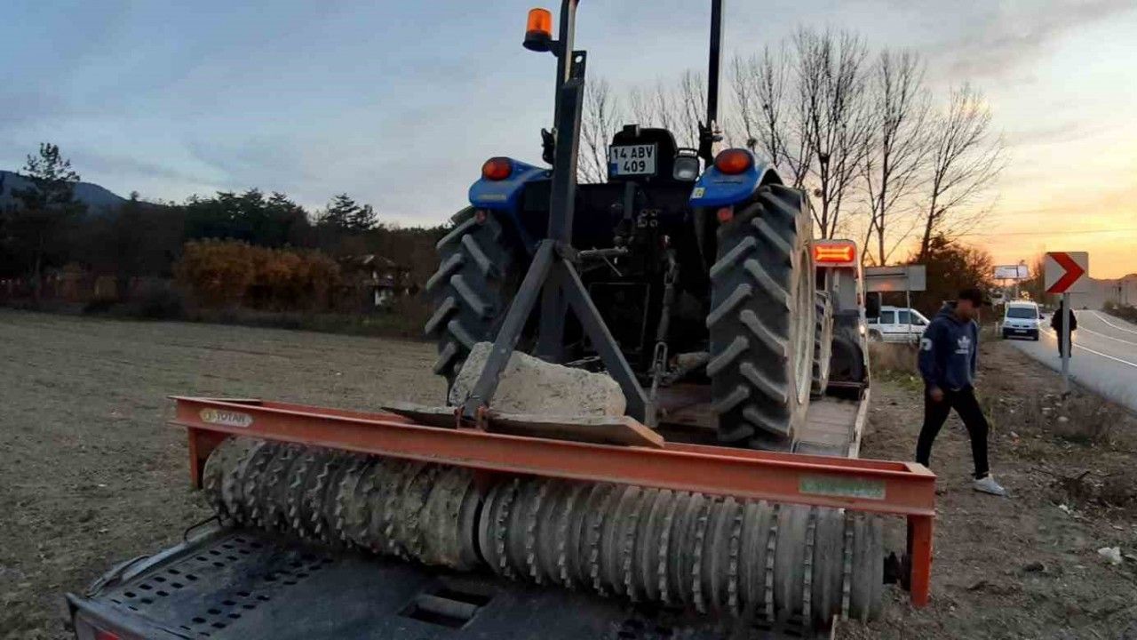 Kaza, Mudurnu ilçesi Yıldırım Beyazıt Mahallesi mevkiinde meydana geldi. Edinilen bilgiye göre, tarlasında 14 ABV 409 plakalı traktörüyle merdane yapan Nihat Ç., traktör hareket halindeyken, traktör ile merdane arasına girdi. Nihat Ç., merdanenin altında kalarak ağır yaralandı. Olayı gören vatandaşların ihbarı üzerine bölgeye sağlık ve jandarma ekipleri sevk edildi. Olay yerine gelen sağlık ekipleri tarafından ambulansta ilk müdahalesi yapılan ağır yaralı Nihat Ç., Bolu İzzet Baysal Eğitim ve Araştırma Hastanesi’ne kaldırıldı.