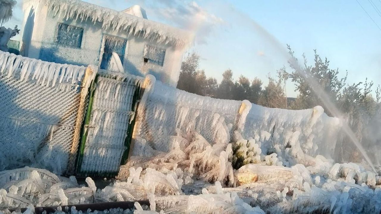 Erdemli ilçesinden 30 kilometre uzaklıktaki yüksek kesimlerdeki Karaahmetli Mahallesi'nde hava sıcaklığı gece saatlerinde eksi 3 dereceye kadar düştü. İlçede don gözlenirken, Mersin Büyükşehir Belediyesi Su ve Kanalizasyon İdaresi Genel Müdürlüğü'ne (MESKİ) ait su deposunun olduğu binanın önünden geçen sulama suyu borusu patladı. Patlamanın etkisiyle borudan fışkıran su, rüzgarla birlikte çevreye saçıldı. Bina ve bahçesini dolduran su, eksi 3 dereceye bulan havada dondu. Çevresindeki evler ve yeşile bürünmüş bahçelerin arasında buz tutan depo ile rüzgar ile savrulan donmuş su, mahalle sakinleri tarafından görüntülenerek, sosyal medyada paylaşıldı. (DHA)