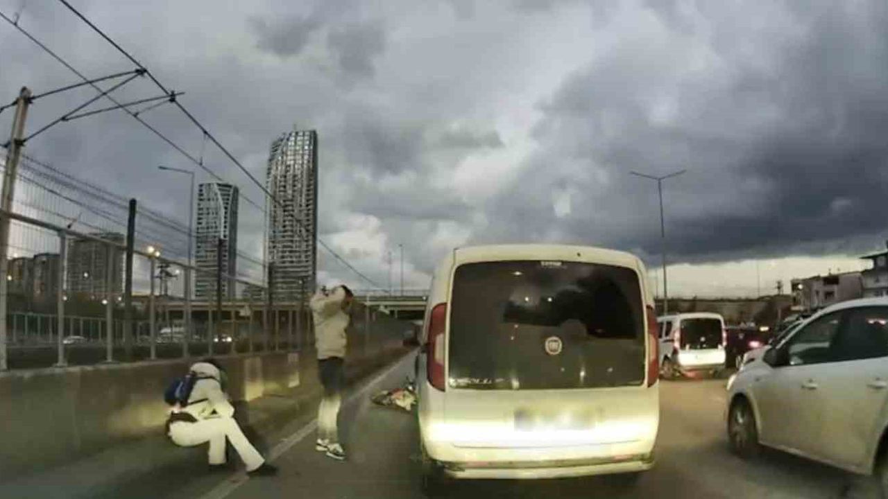 Bursa'da seyir halindeki motosikletli ile çarpıştıktan sonra aracından inen sürücü, ölümden dönen yaralıyı unutup aracını kontrol etti. O anlar kameraya yansırken, görüntüleri izleyenler sürücüye sitem etti.