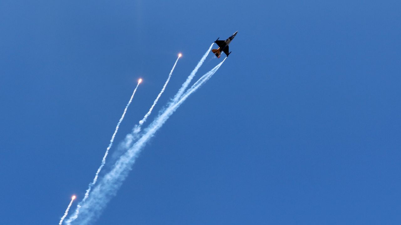 Türk Hava Kuvvetleri'nin akrobasi ekibi SOLOTÜRK, Büyük Taarruz'un 103'üncü yıl dönümü etkinlikleri kapsamında Kocatepe semalarında gösteri uçuşu gerçekleştirdi. Albay Murat Bakıcı'nın komutasındaki SOLOTÜRK, Kocatepe üzerinde sergilediği manevralarla izleyenleri heyecanlandırdı. Türk Hava Kuvvetleri envanterindeki F-16 savaş uçağıyla gerçekleştirilen gösteri hem görsel şölen sundu hem de zafer ruhunu yeniden yaşattı. (DHA)