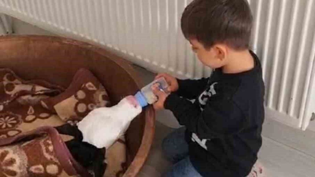 Tokat’ta bir çocuğun erken doğan buzağıyı biberonla beslediği görüntüler yürekleri ısıttı.