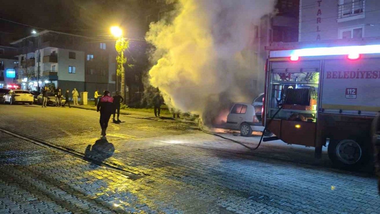 Bartın’da bir sürücü park halindeki otomobilini çalıştırdığı sırada araçta bir anda yangın çıktı. Sürücü son anda kendini araçtan dışarı atarken, mahalleli yangını söndürmek için kovalarla su taşıdı.