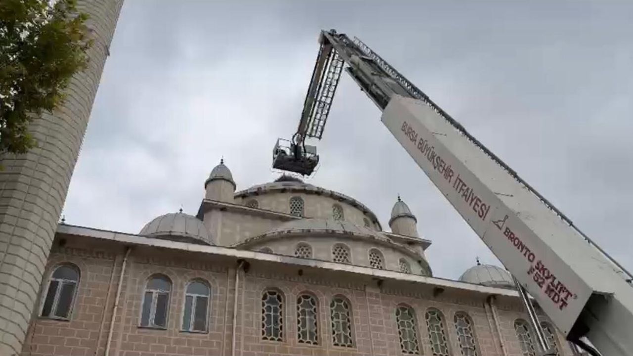 Hasan BOZBEY/İZNİK (Bursa), (DHA)- BURSA’nın İznik ilçesinde, cami kubbesindeki yuvasının kenarına ayağı sıkışıp kırılan leylek, itfaiye ekipleri tarafından üçüncü denemede kurtarıldı.