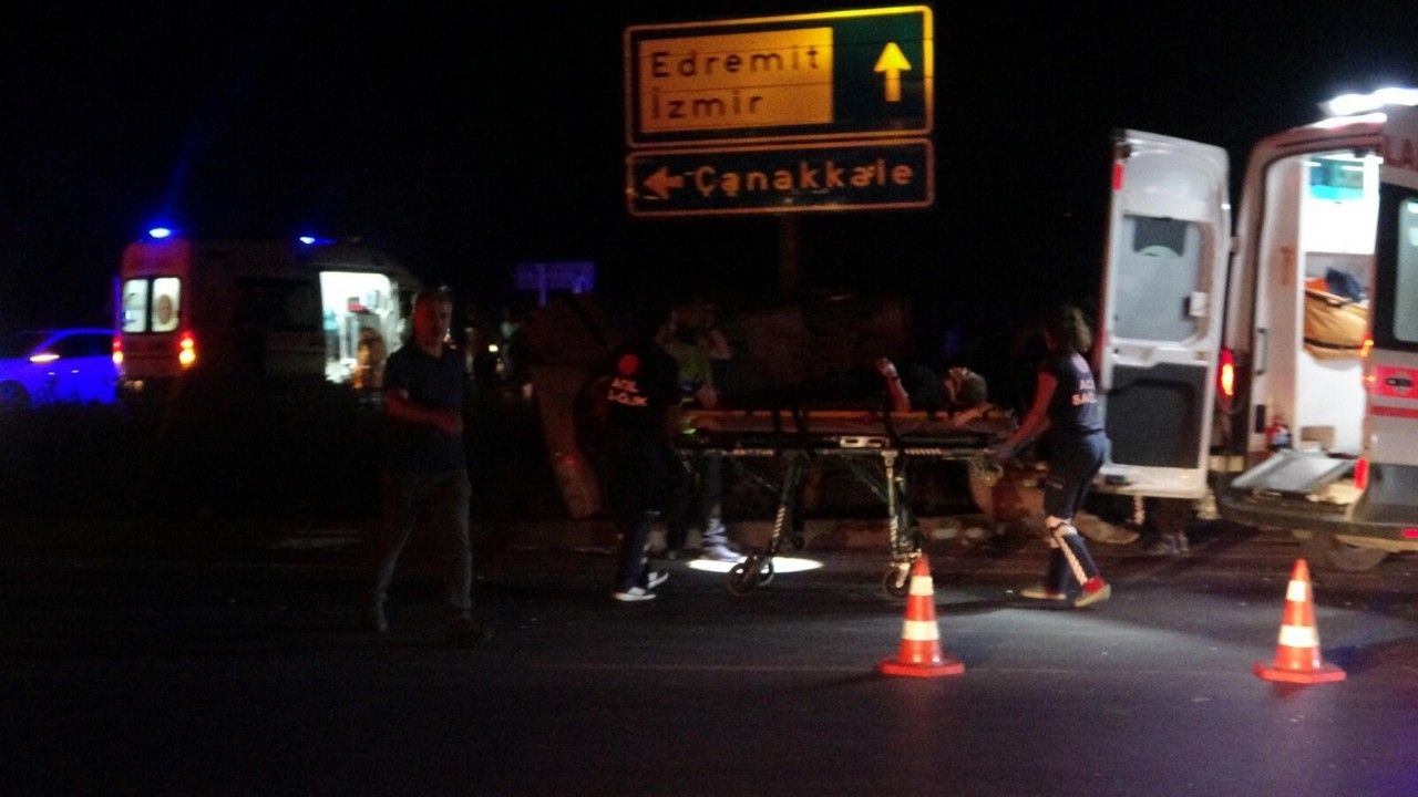Kaza, saat 00.30 sıralarında Ayvacık ilçesi Assos Kavşağı'nda meydana geldi. Assos'tan Çanakkale yönüne giden Erdal Özer'in kullandığı 17 UY 939 plakalı otomobil ile Sezai Çetin yönetimindeki 17 ACB 155 plakalı otomobil çarpıştı. Kazada Çetin ile diğer araç sürücü Özer ve yanındaki eşi Meryem Özer yaralandı. Yoldan geçen diğer sürücülerin ihbarı üzerine kaza yerine çok sayıda sağlık ekibi sevk edildi. Yaralılardan Sezai Çetin ambulansla Ezine Devlet Hastanesi'ne, Erdal ve Meryem Özer çifti ise ambulansla Ayvacık Devlet Hastanesi'ne kaldırıldı. Tedaviye alınan yaralılardan Çetin'in durumunun ağır olduğu bildirildi. (DHA)