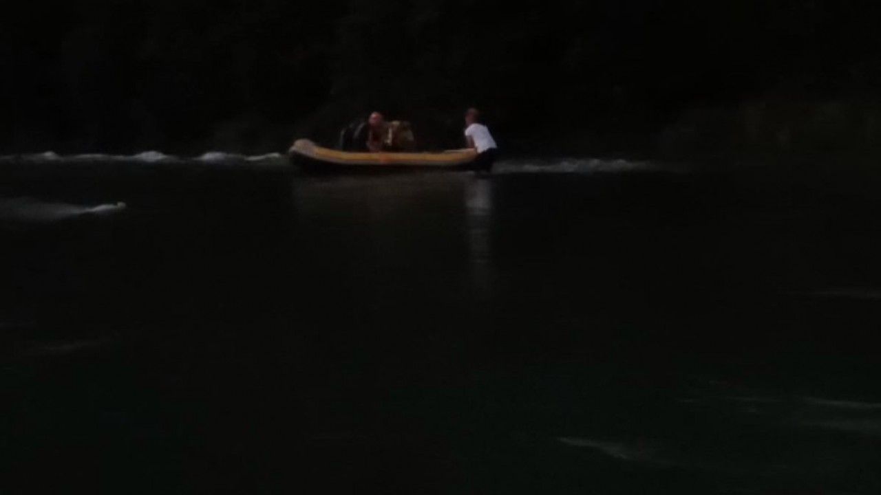 Hakan KABAHASANOĞLU/ TİREBOLU (Giresun), (DHA)- GİRESUN'un Tirebolu ilçesinde, Harşit Çayı'nda avlandıkları sırada su debisi yükselince tutundukları kayada mahsur kalan 2 amatör balıkçı, İl Afet ve Acil Durum Müdürlüğü (AFAD) ekiplerince kurtarıldı. Kurtarma anları AFAD kamerasıyla görüntülendi.