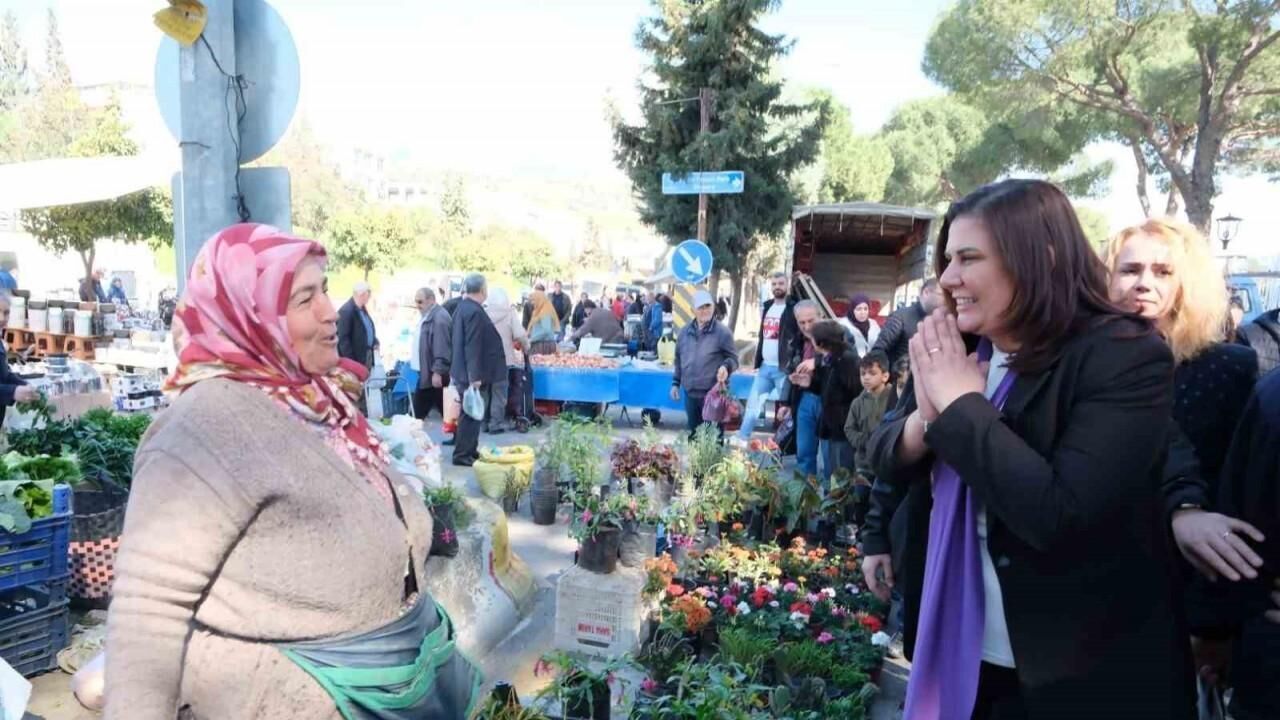 Aydın Büyükşehir Belediye Başkanı Özlem Çerçioğlu, Cumhuriyet Halk Partisi (CHP) Efeler Belediye başkan adayı Anıl Yetişkin ile birlikte Efeler Cumartesi Pazarı’nda vatandaşlarla bir araya geldi. Kendilerine desteklerinin önümüzdeki dönemde de devam edeceğini söyleyen vatandaşlar, ilçede yapılan ve yapılacak olan yatırım ve hizmetler için Çerçioğlu’na teşekkür etti.