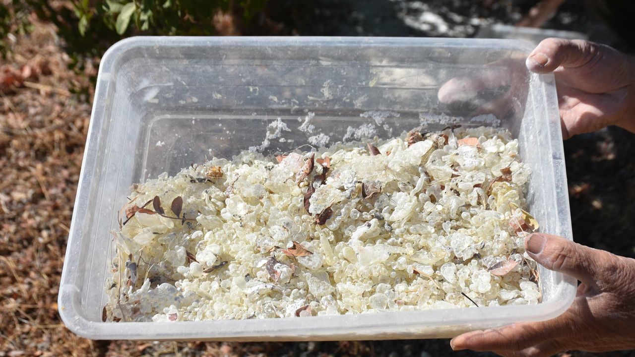 Sıcaklar erken başladığı için temmuz ayının ilk haftasında sakız ağaçlarında çizimler yapıldığını vurgulayan Tütüncüoğlu, "Yaklaşık 2 aylık süreç geçti. Normalde eylül ayının ortalarına kadar bekliyoruz ama geçen sene bir yağmur olayı oldu. Bu dönemlerde gelebilecek bir yağmur, ağaçların altındaki damlalara zarar veriyor. Yağmur suyu sakızları süpürüp götürüyor. Son günlerde havalar da serin gidince, damlalar çabuk kurudu. Kuruduğu için ve yağmur riskine karşı hemen bugün hasada başladık. Hasadımız, toplama sürecimiz yaklaşık 1 hafta 10 gün sürecek. Tek tek toplanıyor, toplandıktan sonra temizlenme, yıkanma süreci başlayacak. Kasım sonu gibi de tüketilmeye hazır hale gelir" ifadelerini kullandı.