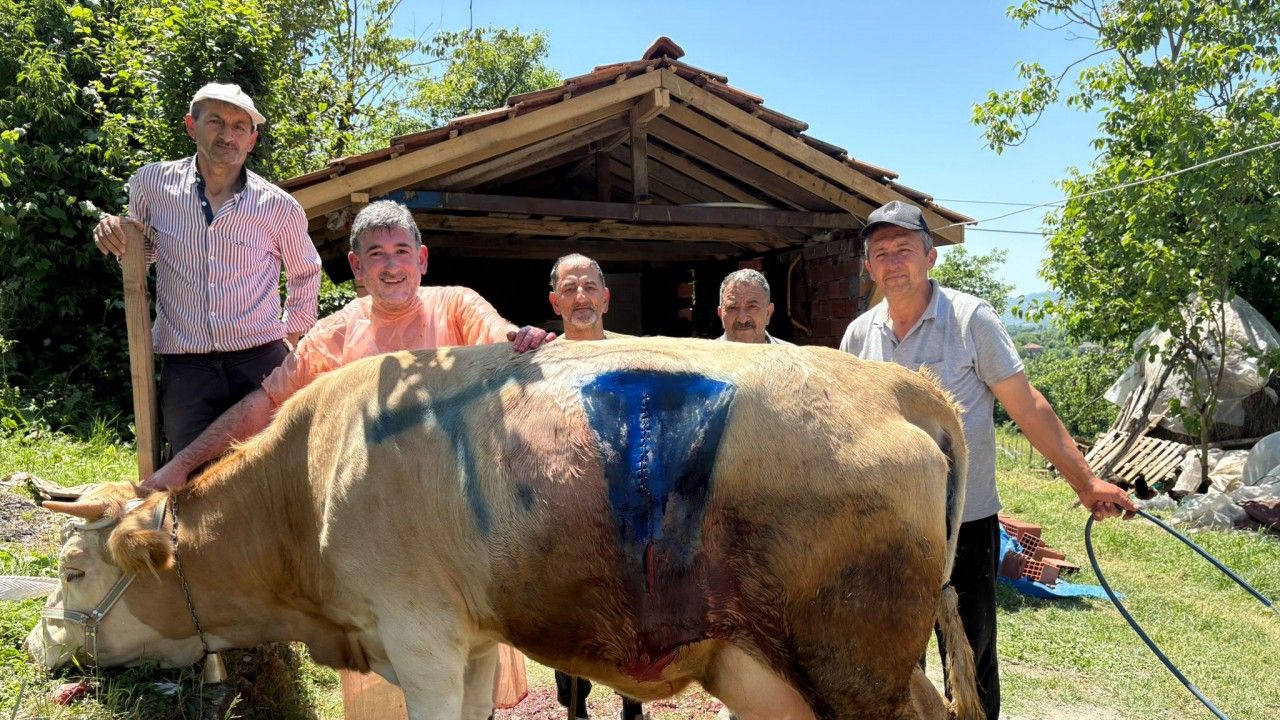 Karainler köyünde yaşayan Mustafa Yaman'a ait 2 yaşındaki Simental cinsi ineğin, sabah saatlerinde doğumu başladı. Durum, veteriner hekim Tolga Kandıralı'ya haber verildi. Veteriner hekim Kandıralı, ineğin muayenesinde sezaryen yapılmasına karar verdi. Operasyonda ineğin karnından çift başlı buzağı ölü olarak çıkarıldı. Ölü doğan buzağı gömülürken, ineğin sağlık durumunun iyi olduğu bildirildi.
