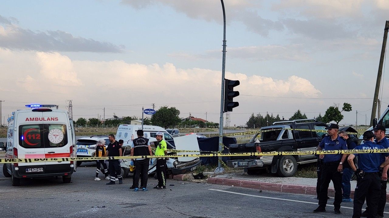 Kaza, dün saat 18.00 sıralarında merkez Meram ilçesi Gödene Mahallesi Hatunsaray ve Memleket caddelerinin kesiştiği kavşakta meydana geldi. Kadir Yıldız idaresindeki 42 Y 5492 plakalı otomobil ile Ali Başişçi’nin kullandığı 34 AP 6806 plakalı kamyonet çarpıştı. Savrulan araçlar, yol kenarındaki arazide park halinde bulunan kamyona çarptı. Çevredekilerin ihbarı üzerine olay yerine sağlık ve polis ekipleri sevk edildi. Sağlık ekipleri, otomobildeki Fatma Yıldız’ın yaşamını yitirdiğini belirledi. Yaralanan eşi Kadir Yıldız ise ambulansla Meram Devlet Hastanesi’ne kaldırıldı. Kamyonetin sürücüsü Ali Başişçi ile yanındaki Durmuş Başişçi, Mümine Feride Başişçi ve Zeycan Karaağaç da ambulanslarla Konya Şehir Hastanesi’ne götürüldü. Tedaviye alınan yaralılardan Kadir Yıldız, doktorların tüm çabasına karşın yaşamını yitirdi.