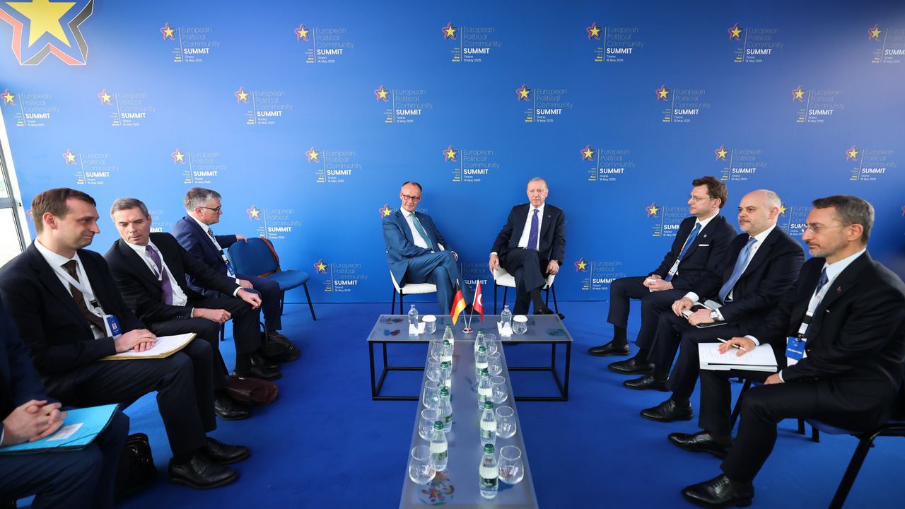 ARNAVUTLUK, (DHA) – CUMHURBAŞKANI Recep Tayyip Erdoğan, Avrupa Siyasi Topluluğu Zirvesi kapsamında Almanya Başbakanı Merz ile görüştü.GÖRÜNTÜ DÖKÜMÜ----------------- Görüşmeden görüntüler