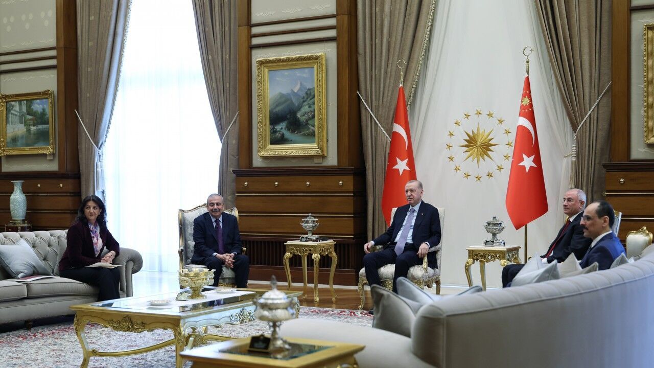 Aybala MELEK/ANKARA, (DHA)- CUMHURBAŞKANI Recep Tayyip Erdoğan, DEM Parti heyetini kabul etti.