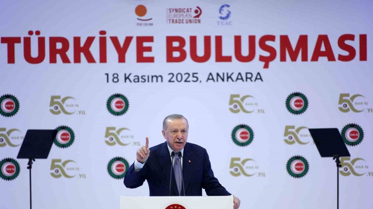 Türkiye’nin bugünlere gelmesine katkı sunanların en başında işçilerin, çalışanların, emekçilerin geldiğini belirten Cumhurbaşkanı Erdoğan, "Bugün şunu çok net bir şekilde görüyor ve gönül rahatlığıyla söylüyorum: Şimdiye kadar olduğu gibi, Türkiye Yüzyılında da şeref hakkı, el emeğiyle, göz nuruyla, alın teriyle helal rızkını kazanan siz emekçilerimizin olacaktır. Hükümet olarak bunun için canla, başla çalışmaya devam edeceğiz. Hangi sendika bünyesinde olursa olsun, ülkemiz ve milletimiz için çalışan tüm işçi kardeşlerimi bir kez daha saygıyla selamlıyor; Türkiye’ye yaptıkları eşsiz hizmetlerden ötürü her birine şükranlarımı ifade ediyorum. Burada şu gerçeğin altını çizmek istiyorum: Örgütlü emek ve hak mücadelesi için sendikalar elbette vazgeçilmezdir. Fakat, unutmayalım ki, sendikalarımızın varlığı işçi ile kaimdir, emekçi ile kaimdir. İşçi olduğu için, emekçi örgütlendiği için sendikalar vardır. Sadece sendikaların değil, son tahlilde işverenin varlığı da, o işi yapacak insan unsuruyla kaimdir. Biz bunları birbirine hasım gören, birbirinin adeta kanlı-bıçaklısı gören kökü dışarıda ideolojik yaklaşımları reddediyoruz. İşçiyle işvereni düşmanlaştıran anlayışın, şöyle bir geriye baktığımızda, emek mücadelesine katkıdan ziyade zarar verdiğini görüyoruz. Şurası bir gerçek ki; alın teri ve emek, hiçbir ideolojiye, hiçbir hizbe, hiçbir klik ve gruba ipotek edilemeyecek kadar kutsaldır, yücedir, hürmete layıktır" açıklamasını yaptı.
