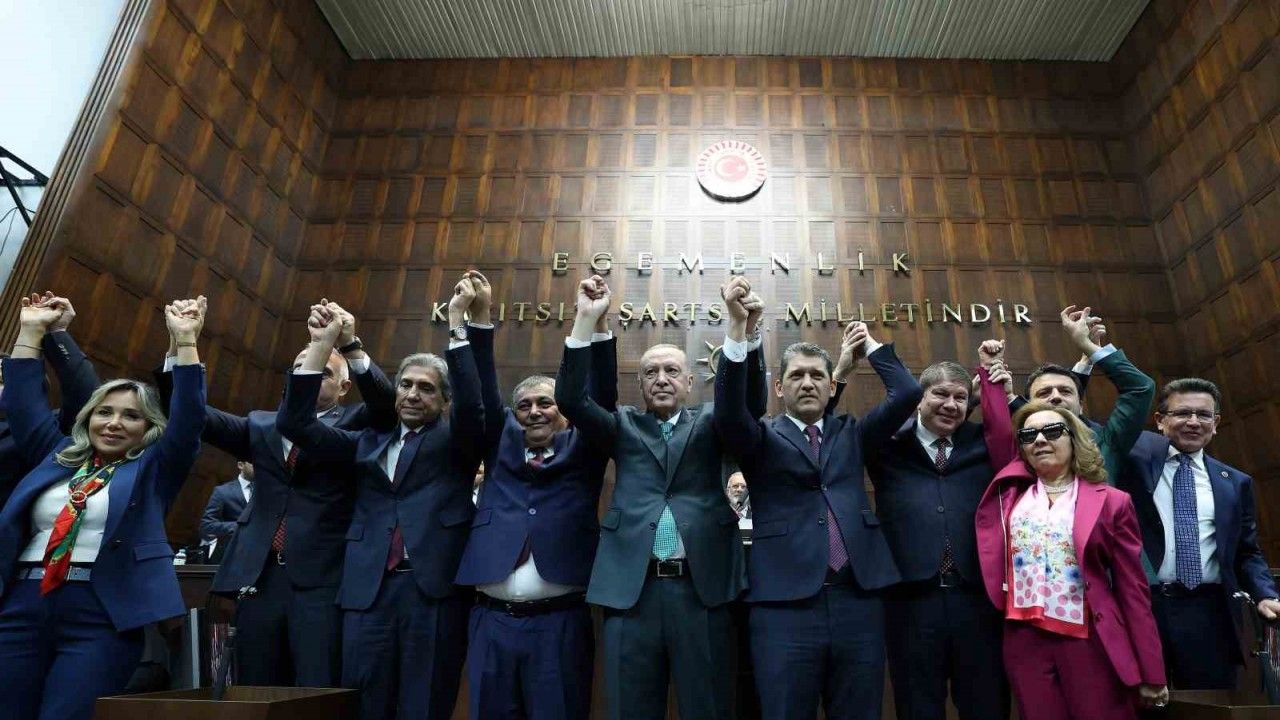 Cumhurbaşkanı Erdoğan, partisinin grup toplantısında yaptığı konuşmanın ardından AK Parti’ye katılan CHP’li Antalya Aksu Belediye Başkanı İsa Yıldırım’a ve Yeniden Refah Partisi’nden seçilen Konya Sarayönü Belediye Başkanı Necati Koç’a rozet taktı.