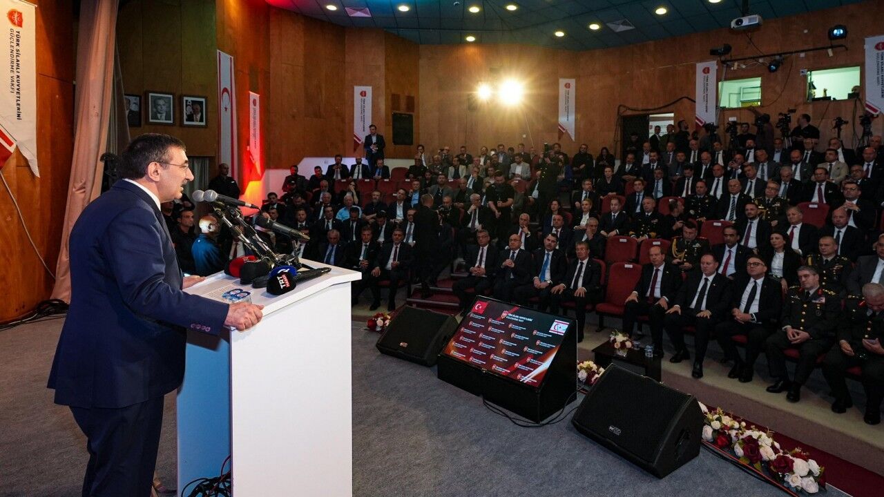 Cumhurbaşkanı Yardımcısı Cevdet Yılmaz, Kuzey Kıbrıs Türk Cumhuriyeti’nde (KKTC) 'Bağışçılar Madalya ve Berat Takdim Töreni'ne katıldı. Yılmaz, törene ilişkin sosyal medya hesabından yaptığı açıklamada, “KKTC programımız kapsamında; KKTC Cumhurbaşkanı Sayın Ersin Tatar, KKTC Başbakanı Sayın Ünal Üstel ve Çevre, Şehircilik ve İklim Değişikliği Bakanımız Sayın Murat Kurum ile birlikte, Türk Silahlı Kuvvetlerini Güçlendirme Vakfı’na bağışta bulunan Kıbrıs Türkü hayırseverlerimize madalya ve beratlarını takdim ettik. Bu madalyalar, sadece bir teşekkür değil; aynı zamanda milletimizin savunma sanayiine sahip çıkma iradesinin, kardeşliğimizin ve ortak geleceğe duyduğumuz inancın bir nişanesidir. Kıbrıs Barış Harekatı’ndan bugüne uzanan bu yolculukta; ambargoları, yoklukları aşarak kurduğumuz ASELSAN’ı, HAVELSAN’ı, ROKETSAN’ı büyüttük. Bugün ise KAAN’dan KIZILELMA’ya, HÜRJET’ten GÖKBEY’e uzanan millî sistemlerle dünyada savunma sanayiinde söz sahibi bir ülkeyiz. Bu başarının temelinde, Sayın Cumhurbaşkanımız Recep Tayyip Erdoğan’ın güçlü iradesi ile desteklenen tam bağımsız savunma sanayii ve güçlü Türkiye ideali vizyonumuz bulunuyor. Bağışlarıyla bu ideale omuz veren tüm hayırseverlere teşekkür ediyor, madalya alan kıymetli bağışçılarımızı yürekten tebrik ediyorum” ifadelerini kullandı.