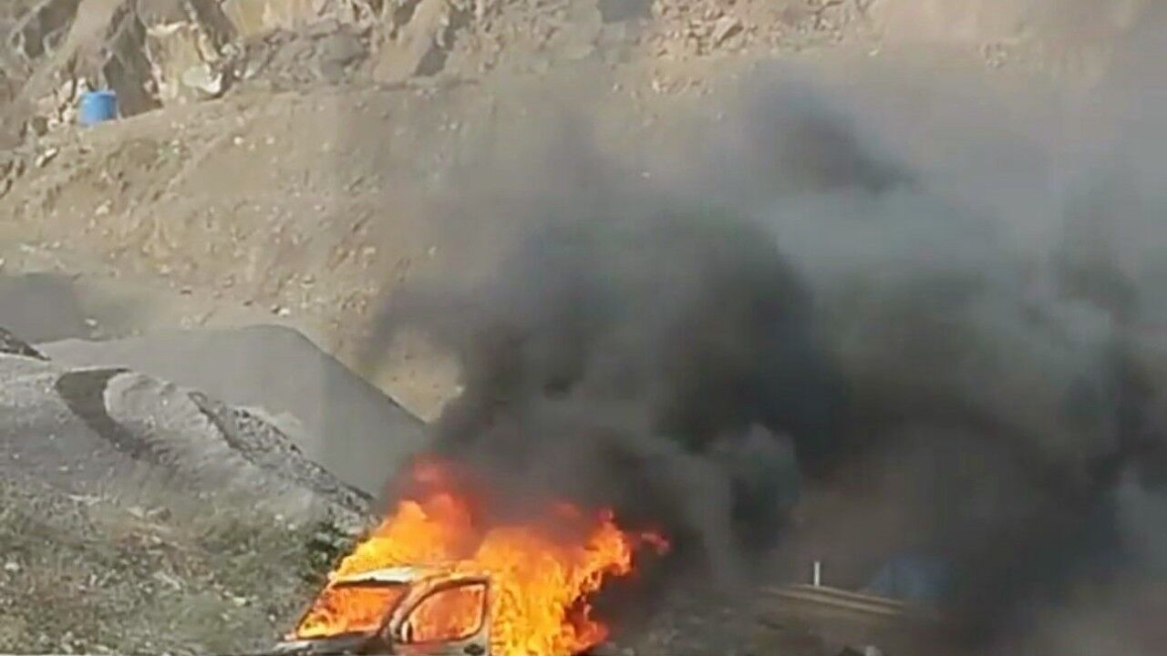 Sakarya’nın Geyve ilçesi D-650 karayolunda alev topuna dönen hafif ticari araç kullanılamaz hale geldi. Aracın alev alev yandığı anlar cep telefonu kamerasına yansıdı.