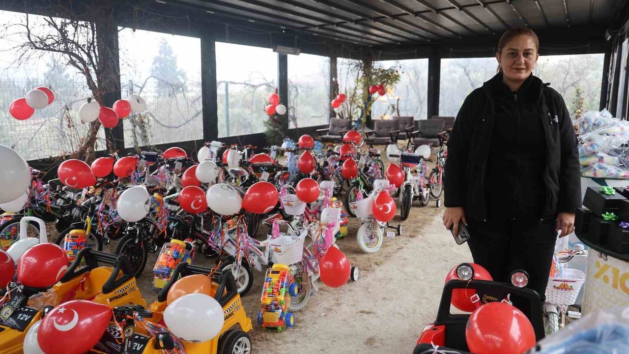 Hayırseverlerin destekleriyle depremde öksüz ve yetim kalan 200 çocuğu hediyelerle mutlu eden Çilem Artan, 'Depremden bu yana gönüllü faaliyetlerimizi devam ettiriyoruz. Özellikle öksüz ve yetim çocuklarımızla daha hassas davranıyoruz. Depremin dördüncü yılındayız ve dört yıl boyunca her yıl geleneksel olarak çocuklarımıza sürprizler yaptık ve yapmaya devam edeceğiz. Hediyeler yaptık, programlar yaptık ve bugün de bir yenisi daha eklenmiş oluyor. Farkındalık oluşturarak öksüz ve yetim çocuklarımıza; bisiklet, akülü araba, akıllı saat, saat ve çeşitli hediyler dağıtacağız. Etkinliğimizde; pamuk şeker, mısır, içecek ve çeşitli ikramlar eşliğinde evlatlarımız eğlenecek. Bizlere destek olan hayırseverlerimize ayrı ayrı çok teşekkür ediyorum. Çocuklarımız çok mutlu ve çok heyecanlı. Bu yüzden günlerdir uyuyamıyorlar. Biz de aynı heyecanı yaşıyoruz. Hep beraber şimdi onların heyecanına ortaklık etmiş olacağız. Hediyelerimiz çeşitli ve çok fazla olduğu için saymakla bitiremiyorum, inanılmaz heyecanlıyım. Dünden beri özellikle bir gün kalasıya çok ayrı bir heyecan oluştu. Onlardaki heyecanı da görebiliyorum. Beraber onların sevincine ortak olacağız. Buradan giderken onların yüzünün gülümsemesi bizim için en büyük sermaye olacak' ifadelerini kullandı.