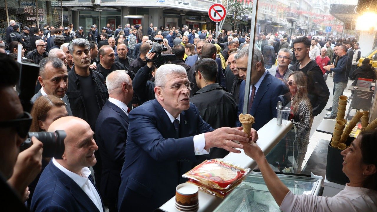 Müsavat Dervişoğlu, Tütün İskelesi’ndeki konuşmasının ardından Onur Anıtı’na giderek çelenk bıraktı. Ardından İstiklal Caddesi’ne giderek esnaf ziyaretinde bulundu. (DHA)