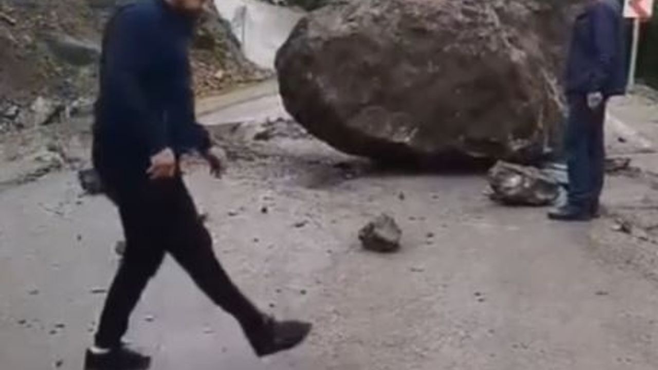 Selda FIRAT/ GÜMÜŞHANE, (DHA)- GÜMÜŞHANE’de meydana gelen heyelanda yamaçtan kopan dev kaya parçası, Erikbeli Yaylası'na ulaşım sağlanan yola düştü. Ekipler iş makinesiyle kayayı kaldırarak kapanan yolu ulaşıma açarken, yaylaya gitmek üzere yola çıkan arkadaş grubu da dev kaya parçasının altında kalmaktan son anda kurtuldu. Grup, olay sonrasını cep telefonu kamerasıyla kaydetti.