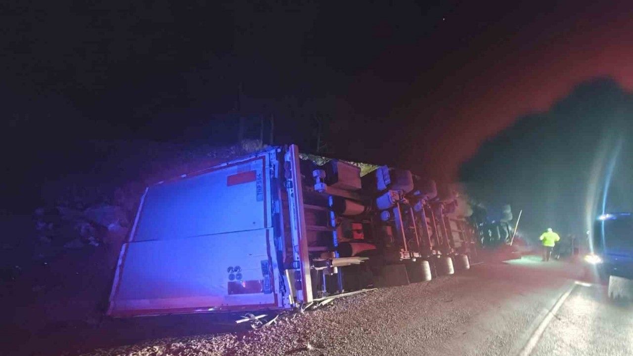 Mersin’in Mut ilçesi sınırlarında yabancı plakalı bir tır devrildi, sürücü olay yerinde hayatını kaybetti.