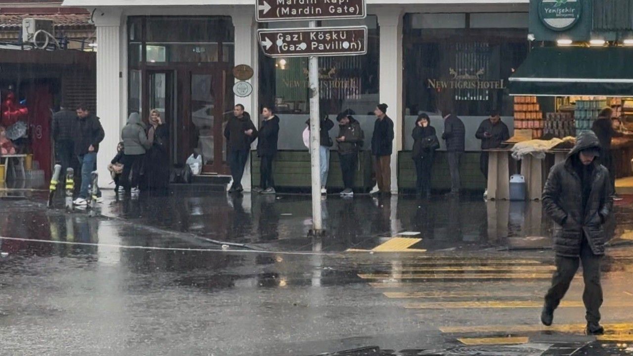 Diyarbakır’da öğle saatlerinde aniden bastıran sağanak yaşamı olumsuz etkiledi. Vatandaşlar, ellerindeki poşet ve kıyafetlerle yağmurdan korunmaya çalıştı.