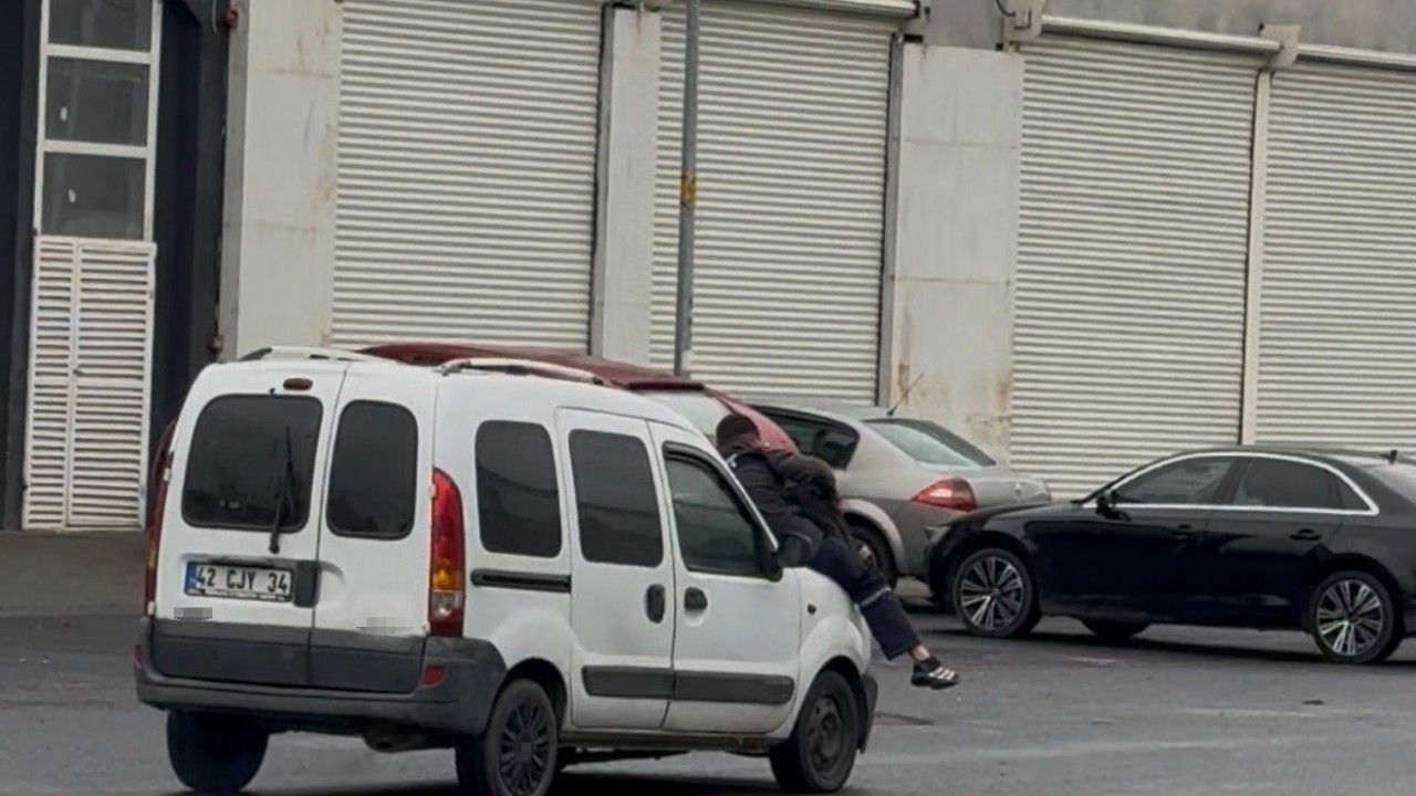 Diyarbakır sanayisinde bir usta, otomobilden gelen sesi anlamak için aracın kaputunun üstüne oturarak tur attı. O anlar görenleri gülümsetti.