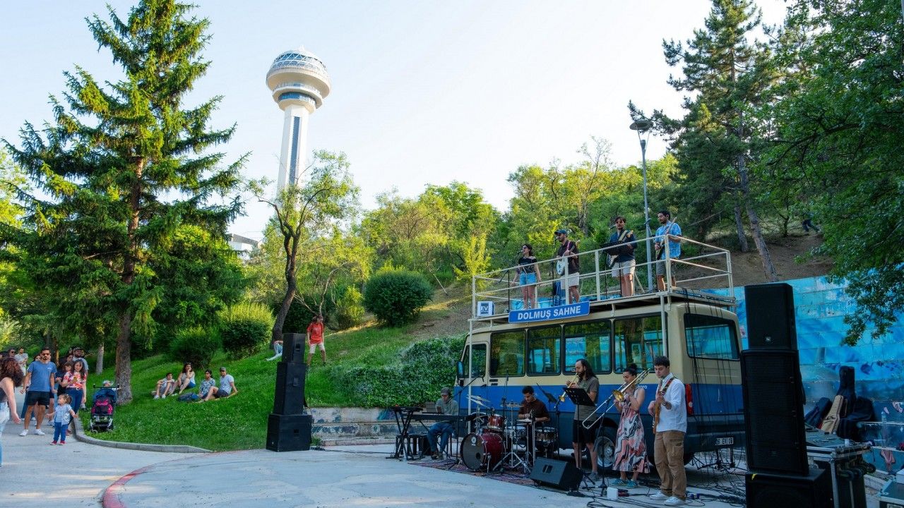 ANKARA, (DHA)- EV.ankara adlı kültür sanat oluşumunun tasarladığı ‘Dolmuş Sahne’, Ankara Büyükşehir Belediyesi iş birliğiyle başkentin dört bir yanındaki parklarda ücretsiz konserlere ev sahipliği yapıyor.