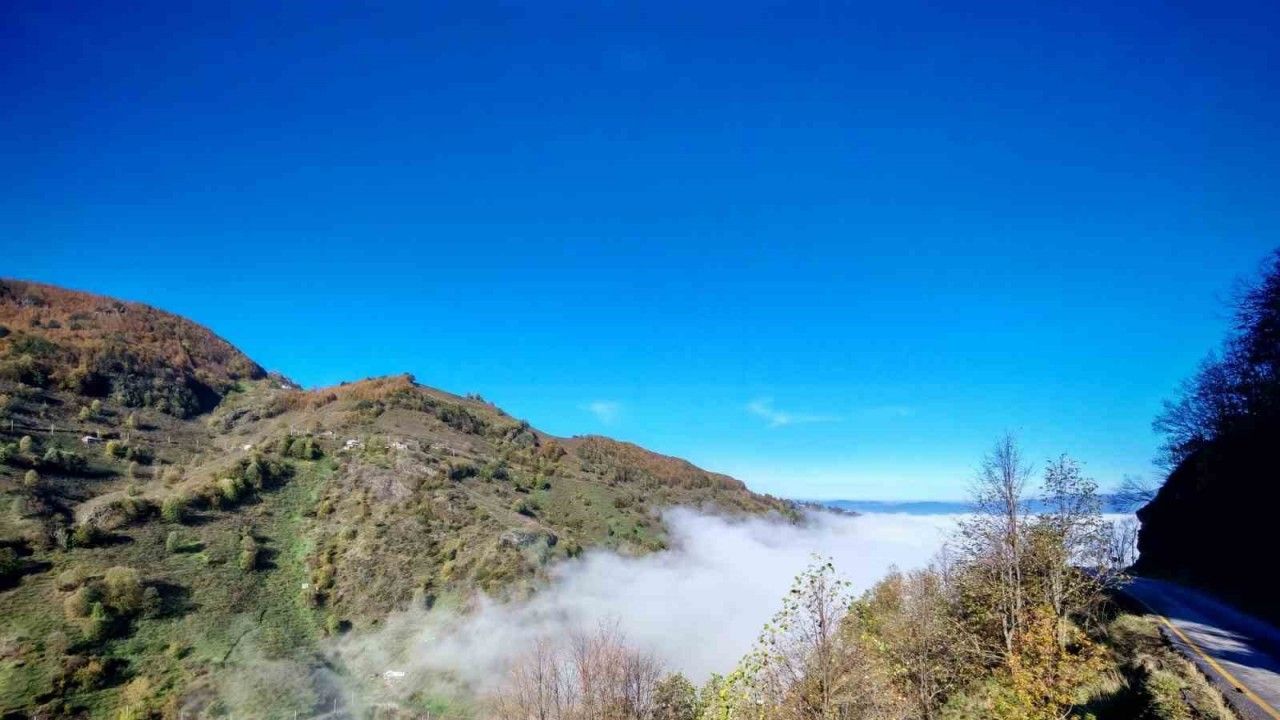 Düzce’de sabah saatlerinden itibaren yoğun sis etkili oldu. Özellikle D-100 Karayolu, TEM Otoyolu ve şehir merkezindeki bazı bölgelerde sis nedeniyle görüş mesafesi azaldı. Trafikte ilerleyen sürücüler, uyarı ışıklarını yakarak kontrollü seyretti. Şehir merkezini etkisi altına alan sis tabakası, yüksek kesimlere çıkıldıkça yerini güneşe bıraktı. Yüksek noktalardan bakıldığında sis tabakasının Düzce ovasını kapladığı görüldü.