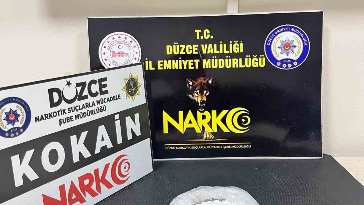 Düzce Cumhuriyet Başsavcılığı koordinesinde Narkotik Suçlarla Mücadele Şube Müdürlüğü ekiplerince İstanbul’dan Ankara iline uyuşturucu madde sevk eden otobüste yolcu olarak bulunan M.K. (53) isimli şahsın üst araması yapıldı. 2 suç kaydı bulunan M.K.’nın üzerinde piyasa değeri 650 bin TL değerinde 153 gram kokain maddesi ele geçirildi. Uyuşturucu madde ticareti yapmak suçundan adli işlem yapılan şüphelinin tutuklandığı bildirildi.