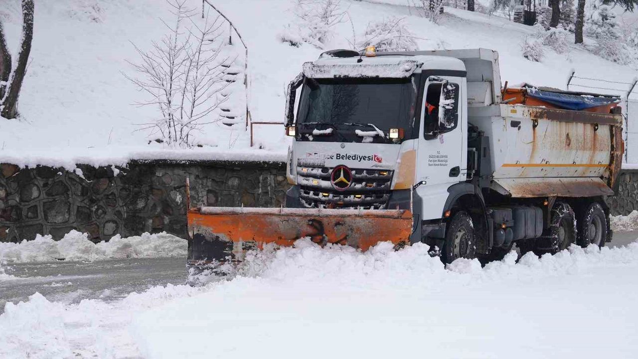 Düzce'de etkili olan kar yağışı nedeniyle yollar ve ana arterler kısa sürede karla kaplandı. Düzce Belediyesi ekipleri sahaya inerek yolların açık tutulması için çalışma başlattı. Düzce Belediyesi'nden yapılan açıklamada, 'Bölgemizde aralıklarla etkili olan kar yağışı nedeniyle, kar küreme ve tuzlama çalışmalarımız devam etmektedir. Vatandaşlarımızın güvenli ulaşımını sağlamak amacıyla; Fen İşleri, Temizlik İşleri, Destek Hizmetleri, Su ve Kanalizasyon Müdürlüğü ile Beyaz Masa birimimizle koordineli şekilde çalışmalarımızı sürdürmekteyiz. Şu ana kadar ana arterlerimiz açık, özellikle Bahçeşehir ve Konuralp bölgelerinde ara sokaklarda küreme çalışmalarımız devam etmektedir. Vatandaşlarımız, kış lastiği bulunmayan araçlar trafiğe çıkmamalı, gelişigüzel park etmekten kaçınmalıdır' denildi.