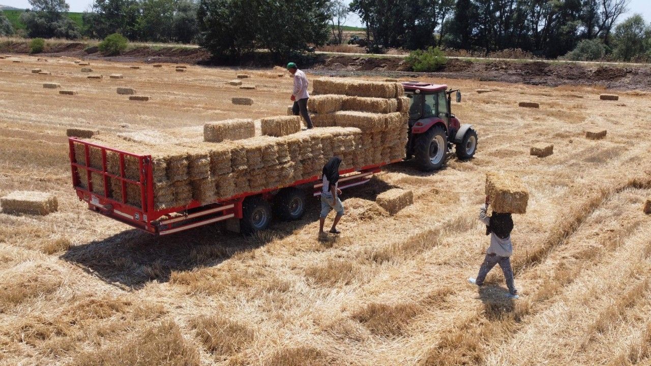 Kentte buğday hasadının tamamlandığı tarlalarda, bu kez balya işçilerinin zorlu mesaisi başladı. Buğdaydan geriye kalan saplar ise tarlalarda traktörlerde bağlı makinelerle, 25 kiloluk balya haline dönüştürülüyor. Balyalar, mevsimlik olarak bölgeye çalışmak üzere gelen işçiler tarafından traktörün çekicisine yükleniyor. Hava sıcaklıklarının 35 ile 40 derece arasında değiştiği kentte, işçiler ağır balyaların yanında kavurucu sıcakla da mücadele ediyor. İşçiler, tanesi 15 liradan balya taşıyarak günde ortalama 3 bin lira kazanıyor. Zorlu mesaide işçiler, sıcak ve tozdan korunmak için başlarına tülbent bağlayarak çalışıyor.