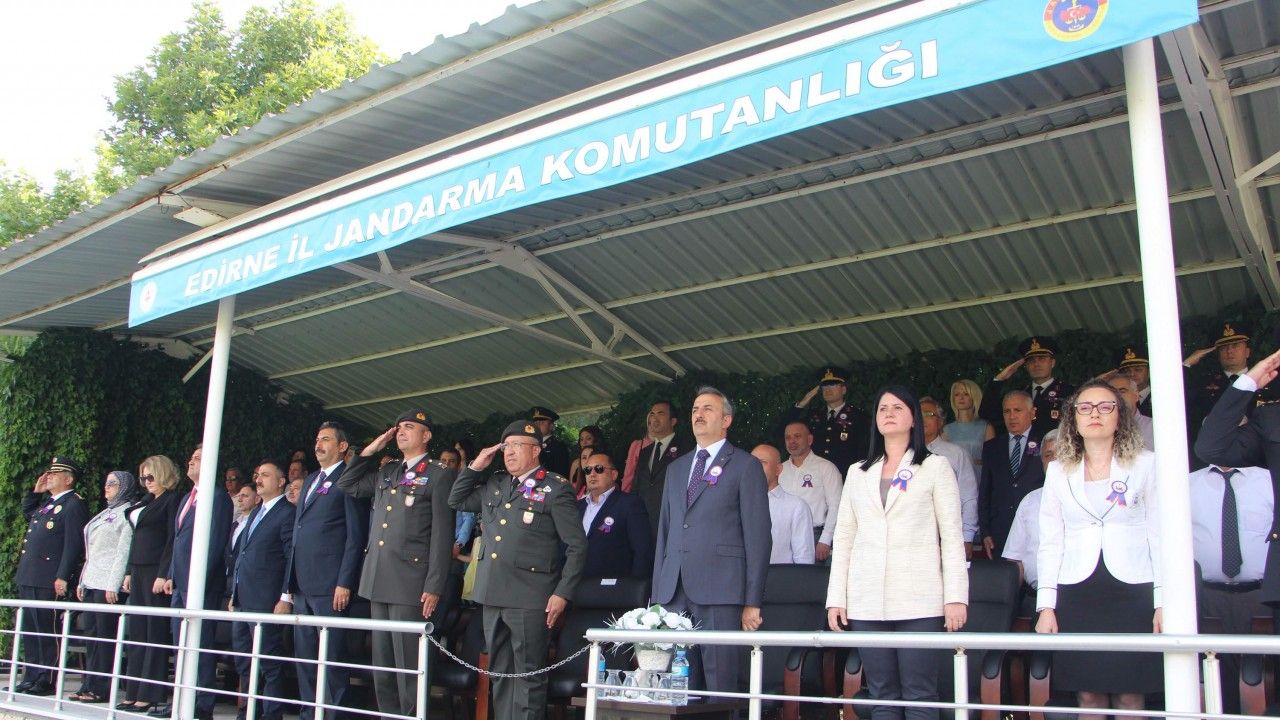 Jandarma Teşkilatı'nın kuruluşunun 186'ncı yılında Edirne İl Jandarma Komutanlığı'nda kutlama töreni düzenlendi. Vali Yunus Sezer, protokol üyeleri ve vatandaşların katıldığı tören, saygı duruşu ve İstiklal Marşı'nın okunmasıyla başladı. Edirne İl Jandarma Komutanı Albay Mehmet Kasım Ermiş, teşkilatın 186'ncı yılını onur ve gururla kutladıklarını belirterek, "Başarılarla dolu 186 yıllık geçmişe sahip Jandarma Genel Komutanlığı, kuruluşundan bugüne kadar milletimizin huzuru, güvenliği ve kamu düzeninin sağlanması için büyük bir özveriyle görev yapmıştır. Halkımızın bizlere duyduğu güvenin bilinciyle, bu sevgi bağını daha da güçlendirme kararlılığındayız. Bu anlamlı günde, teşkilatımızın bugünlere gelmesinde emeği olan tüm komutanlarımıza ve mensuplarımıza minnettarız. Başta Gazi Mustafa Kemal Atatürk ve silah arkadaşları olmak üzere, vatan uğruna can veren aziz şehitlerimizi rahmetle, kahraman gazilerimizi ise minnet ve şükranla anıyorum" dedi.