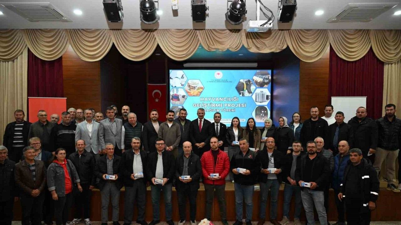 Konuşmaların ardından Vali Yunus Sezer ve Tarım İl Müdürü İslam Köse, üreticilere mastitis tespit cihazını dağıttı.