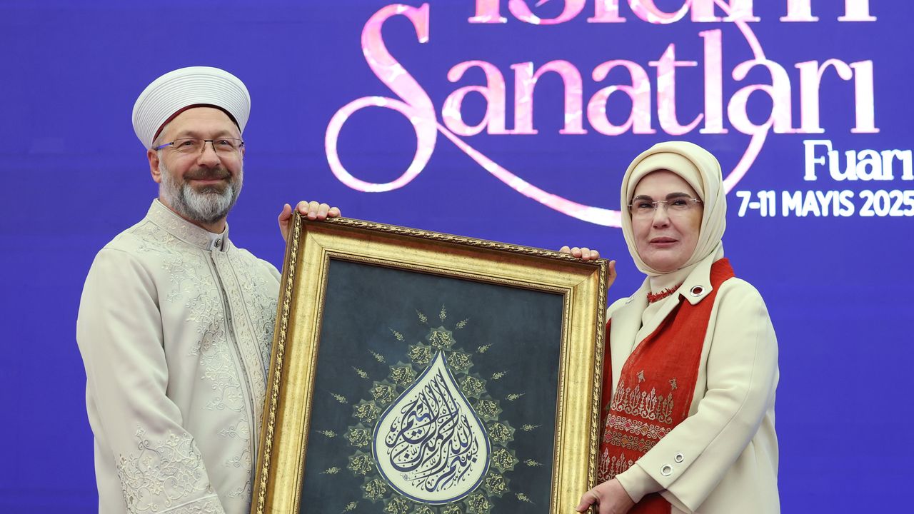Emine Erdoğan, ATO Congresium'da düzenlenen ve Türkiye'de ilk olma özelliği taşıyan 'Uluslararası İslam Sanatları Fuarı'nın açılış programına katıldı. Fuara gelişinde, Aile ve Sosyal Hizmetler Bakanı Mahinur Özdemir Göktaş, Kültür ve Turizm Bakanı Mehmet Nuri Ersoy ile Diyanet İşleri Başkanı Ali Erbaş tarafından karşılanan Emine Erdoğan, beraberindekilerle açılış kurdelesini kestiği fuarın hayırlara vesile olmasını diledi. Emine Erdoğan, açılışın ardından hüsnühat, tezhip ve nakış sanatıyla oluşturulan ve Hz. Muhammed'in yaşadığı çağın önemli dönüm noktalarını betimleyen eserlerin yer aldığı 'Türk İslam Sanatlarıyla Siyer-i Nebiye Yolculuk' sergisini gezdi. Azerbaycanlı sanatçıların eserlerinin sergilendiği standı ziyaret eden Emine Erdoğan, kadın sanatçıların ürettiği dokuma ürünlerini yakından inceledi, ürünlerin üretim süreci hakkında bilgi aldı. Emine Erdoğan, Gaziantep Büyükşehir Belediyesi Kültür A.Ş. standını da ziyaret ederek 'Esma-i Hüsna Hat Sergisi'ndeki eserleri inceledi.