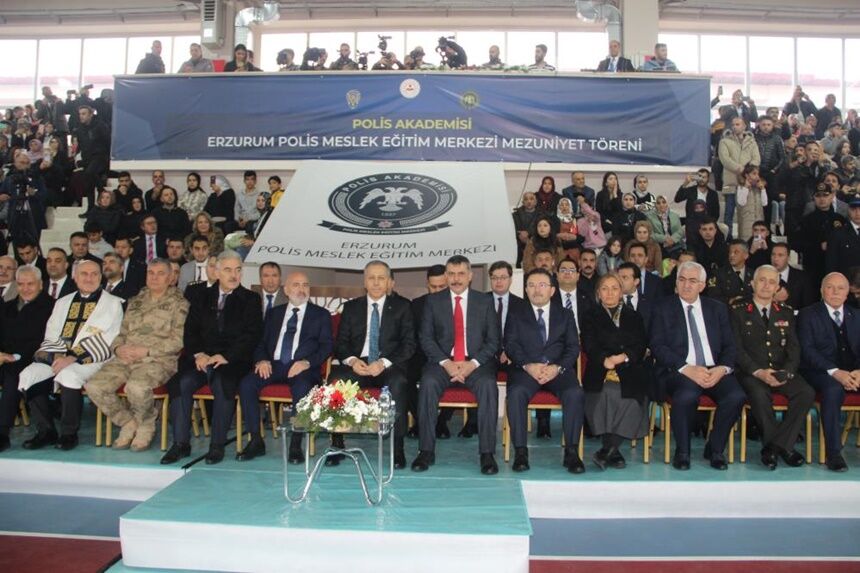 Polis Meslek Yüksekokulu Eğitim Merkezi’nde düzenlenen törene İçişleri Bakanı Ali Yerlikaya’nın yanı sıra Erzurum Valisi Mustafa Çiftçi, Ak Parti Erzurum Milletvekilleri Selami Altınok, Mehmet Emin Öz, Fatma Öncü, Emniyet Genel Müdürü Erol Ayyıldız, Polis Akademisi Başkanı Prof. Dr. Yılmaz Çolak, Jandarma Genel Komutanı Yardımcısı Orgeneral Ali Çardakçı, Büyükşehir Belediye Başkanı Mehmet Sekmen, Emniyet Müdürü Kadir Yırtar ve mezuniyet coşkusu yaşayan polis memurlarının aileleri katıldı.