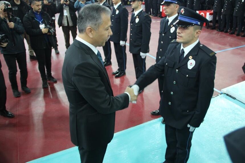 İçişleri Bakanı Ali Yerlikaya. Konuşmasında mezuniyet sevincini yaşayan polis memurlarına hitaben ise “Sizler; Nene Hatun’un diyarında, Bu şanlı üniformayı kuşandınız. Büyük bir milli bilinç ve vazife şuuruyla, Cennet vatanımızın dört bir köşesinde görev yapacaksınız. Eğer sokaklarımız da, Caddelerimiz de, Şehirlerimiz de Huzur olacaksa bu sizlerin sayesinde olacak. Milletimiz evinde başını yastığına Güvenle koyacaksa, bu sizlerin emeği ve fedakârlığıyla olacak. Sokaklarımızda, şehirlerimizde Her türlü suç ve suçluyla Amansız şekilde mücadele edeceksiniz. Teröre, zehir tacirlerine, kaçakçılara, Organize suç örgütlerine göz açtırmayacaksınız. Hukuka bağlılıktan asla ayrılmayacaksınız. Kanunların size verdiği yetkiyi kullanırken sınırları asla aşmayacaksınız. Meslek hayatınız boyunca kanundan, hukuktan, ahlaktan, Milletimize bağlılıktan ve Devletimize sadakatten asla ayrılmayacaksınız. En puslu gecelerde dahi, Daima sizlere doğru yolu gösterecek olan vicdan pusulanızı takip edeceksiniz! Asla aklınızdan çıkarmayın. Artık sizler, İçişleri Bakanlığı ailesinin birer ferdisiniz. Hepimizin tek bir gayesi var: O da; Aziz Milletimizin huzuru ve güvenliğidir. Yolunuz bahtınız açık olsun” diye konuştu.