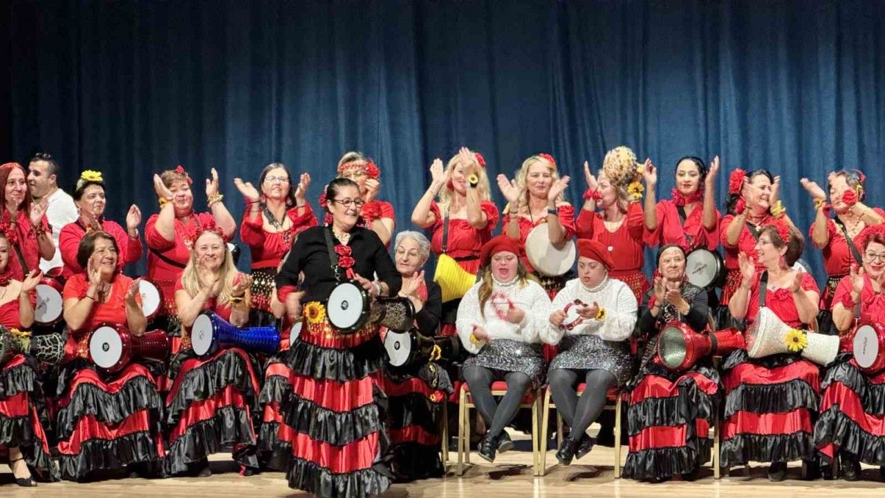 Edirne’de engelli bireylere yönelik düzenlenen konserde sahne alan kadın darbuka ritim grubu, katılımcıları müzikler eşliğinde oynattı.