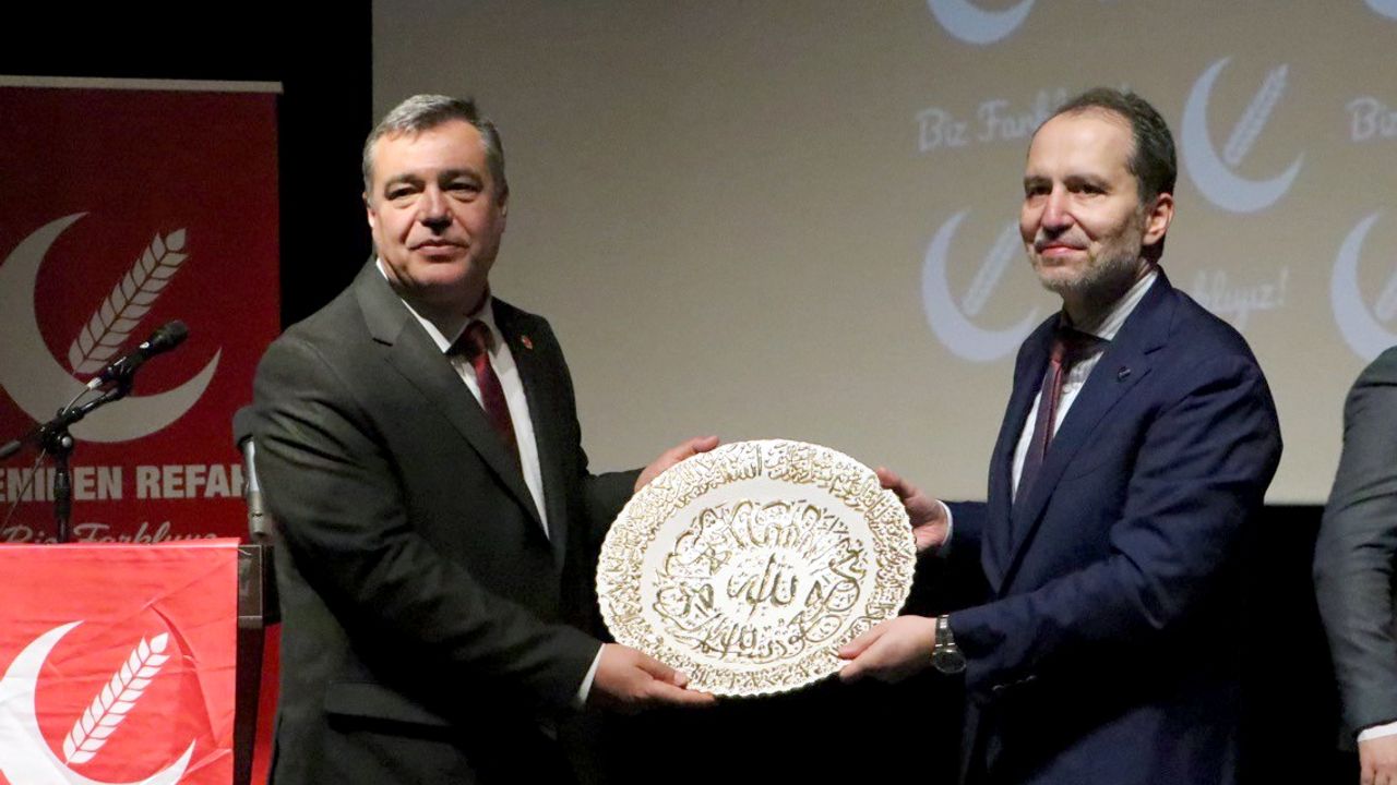 Konuşmanın ardından, İl Başkanı Tuncay Çakır tarafından Genel Başkan Fatih Erbakan’a hediye takdim edildi. Tek adayla gidilen kongrede Tuncay Çakır yeniden il başkanı seçildi. (DHA)