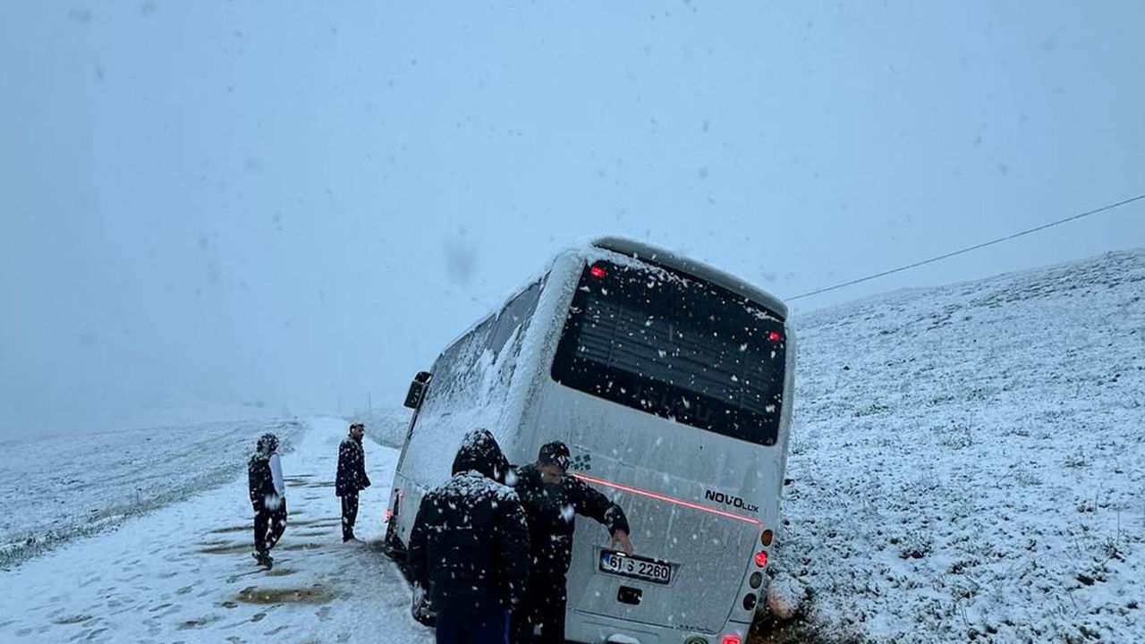 Gaziantep'te oynanacak Ziraat Türkiye Kupası finalini izlemeye giderken kendilerini taşıyan otobüsün kar nedeniyle yoldan çıkıp yan yattığı kazada taraftarlar camdan çıkarak kurtuldu. Bölgeye sevk edilen ekipler, üşüyen yolculara yardım etti. Yolcular ambulanslara alınarak ısıtılırken, otobüs bulunduğu yerden traktörle çıkartıldı. (DHA)