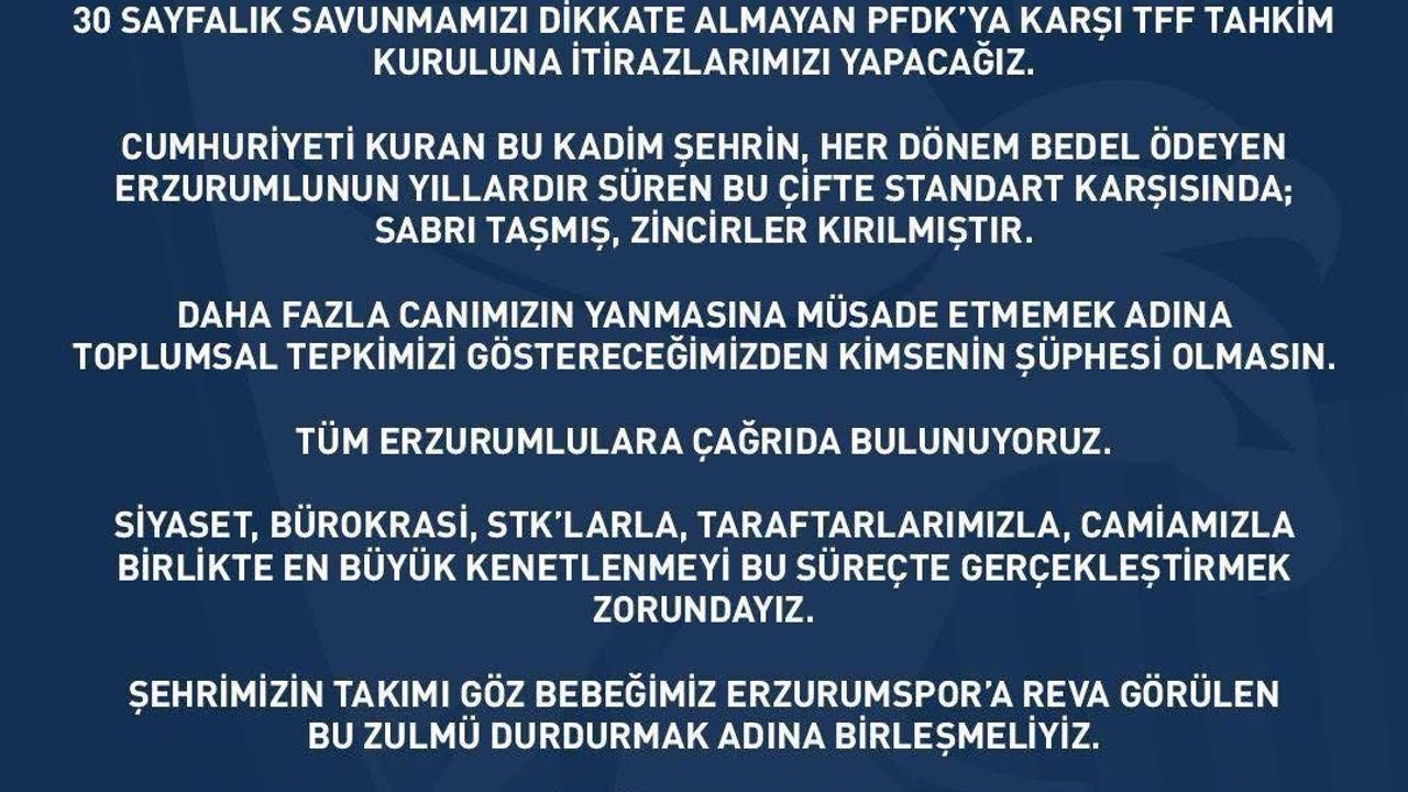Erzurumspor'a PFDK tarafından verilen cezalar şu şekilde;