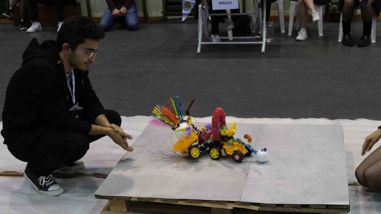 İkişerli 8 takımın oyuncak ve hurda parçalardan yaptığı çeşitli robotlar hazırlanan özel platformda eleme usulüyle kıyasıya yarıştı. Mücadele eden robotların renkli görüntüsü dikkat çekerken, büyük çekişmeye sahne olan yarışmayı tribünlerden öğrenciler heyecanla izledi. Yarışmanın ardından birinci olan takıma 3 bin lira, ikinci olan takıma da 2 bin lira ödül verildi.