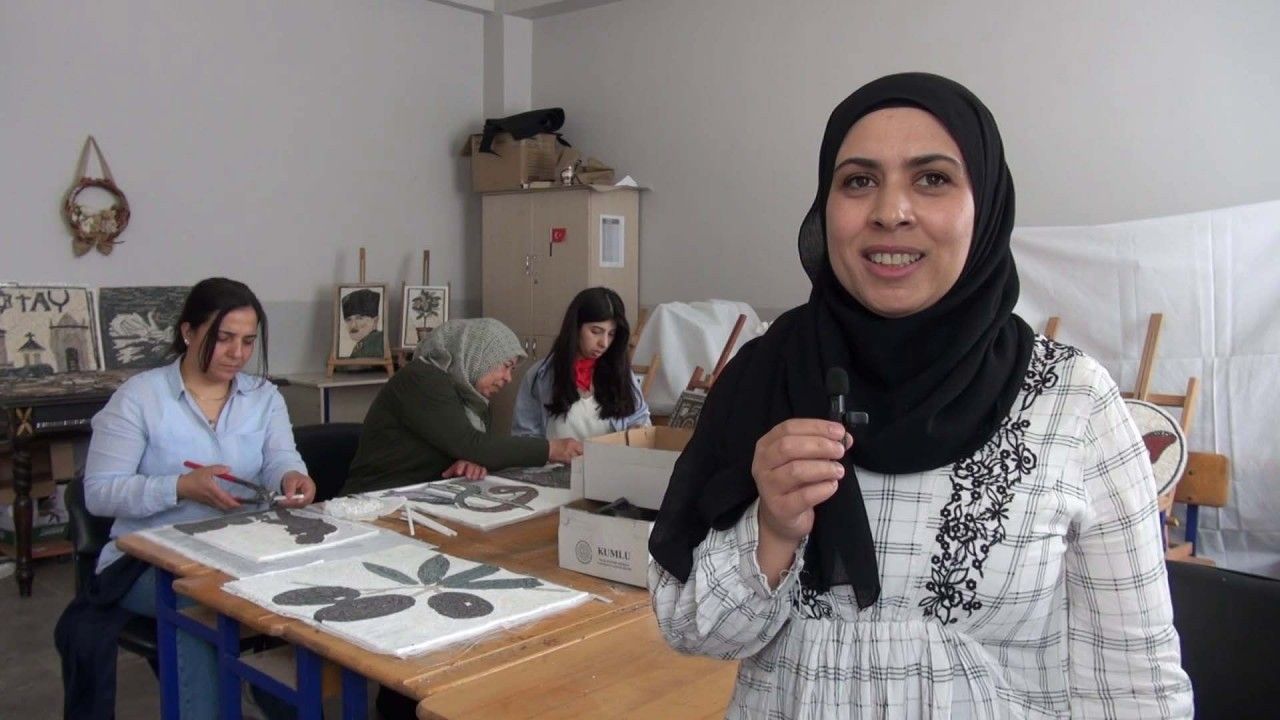 Ferhat DERVİŞOĞLU/KUMLU (Hatay), (DHA)- HATAY'da Kumlu Halk Eğitimi Merkezi’nde ev kadınlarının sosyalleşmesi için mozaik sanatı ve dekoratif ev ürünleri kursu açıldı. Evde oturmak yerine kursa gelerek mozaik sanatını öğrenen kadınlar, birbirinden güzel eserler ortaya çıkardı.