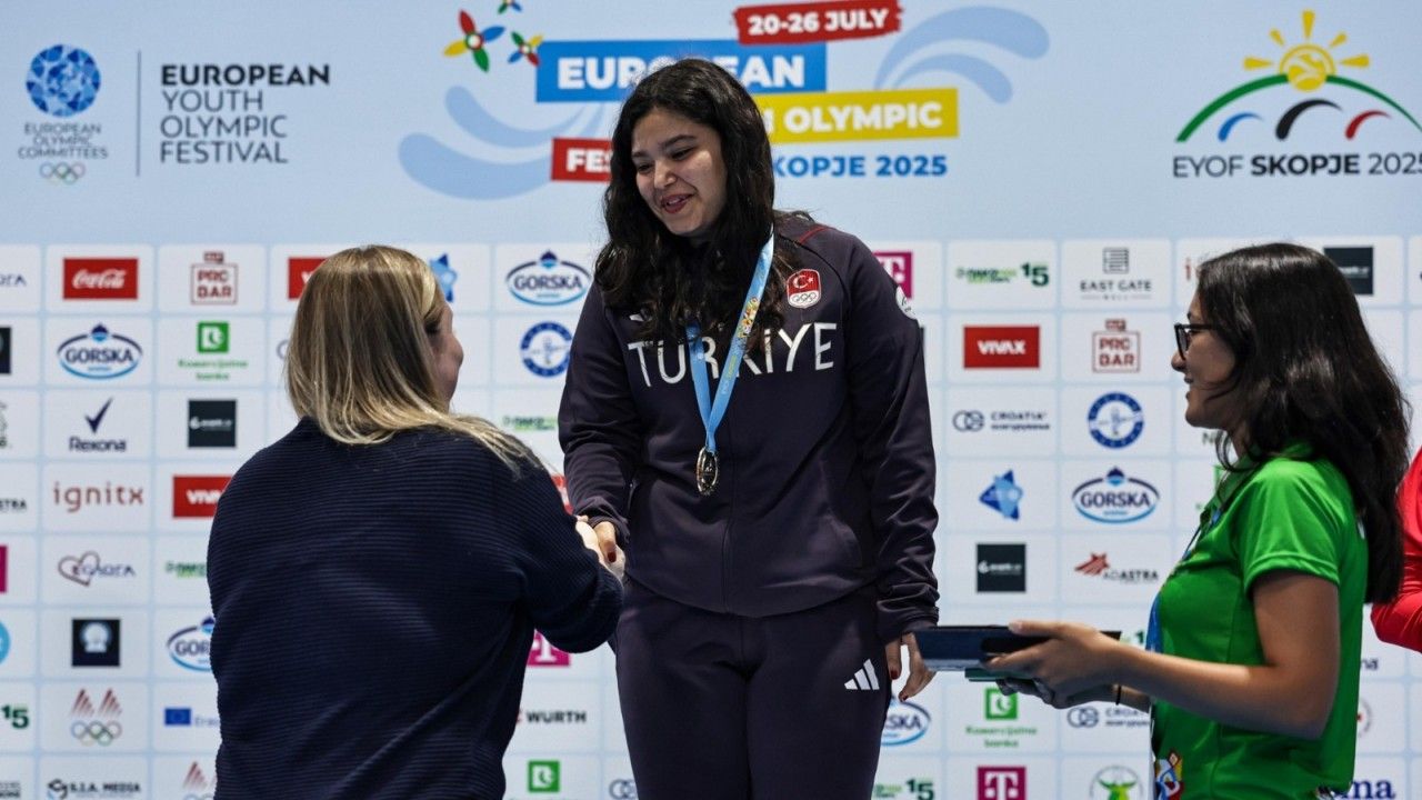 Emre ŞAHİNOL/(BAFRA) Samsun, (DHA)- KUZEY Makedonya’nın Üsküp kentinde yapılan 2025 Avrupa Gençlik Olimpik Yaz Festivali’ne (EYOF 2025) Atıcılık dalında tek kadın sporcu olarak Türkiye’yi temsil eden Ezginur Türkmen altın madalya kazandı.