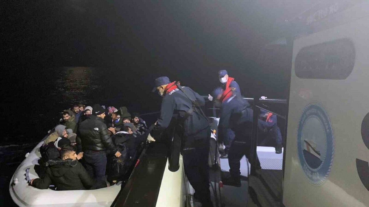 Muğla’nın Fethiye ilçesinde yasa dışı yollardan çıkış hazırlığında olan ve bindikleri lastik botun arıza yapması sonrası yardım çağrısında bulunan 33 düzensiz göçmen yakalandı.