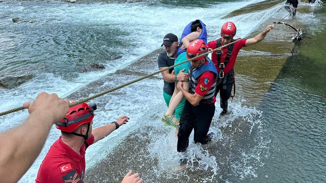Rize’de gezmek için geldikleri Çamlıhemşin ilçesinde serinlemek için girdiği derede akıntıya kapılan çocuk ve peşinden suya atlayan babasını JAK ekipleri ve vatandaşlar kurtardı.