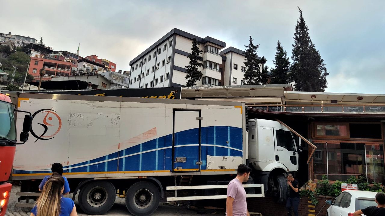 Ufuk AKTUĞ- Sedat İSKENDEROĞLU/ HATAY, (DHA)- HATAY'ın Belen ilçesinde freni tutmayan kamyon, park halindeki vidanjöre çarpıp, restorana girdi. Cep telefonu kamerasına yansıyan kazada şans eseri ölen ya da yaralanan olmadı.